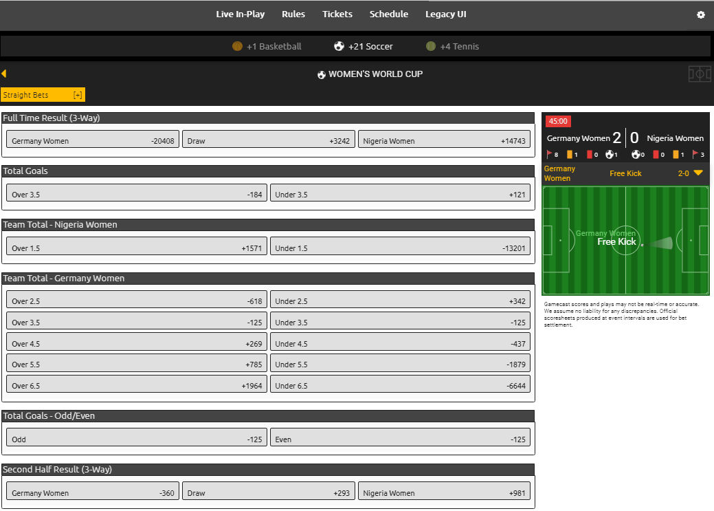Live Wagering has dominated the market over the last few years. It has seen a great increase in action and volume and is fast becoming a player’s favorite spot to spend time during games. This gives them the ability to wager in real-time on the game(s) they are watching, thereby offering them additional options to keep them on the site and active. They can bet on props, sides, totals, alternate lines and a much more while the game is happening. These odds are updated on the fly and the hold % for this product is almost double the industry standard for being a profitable operation.