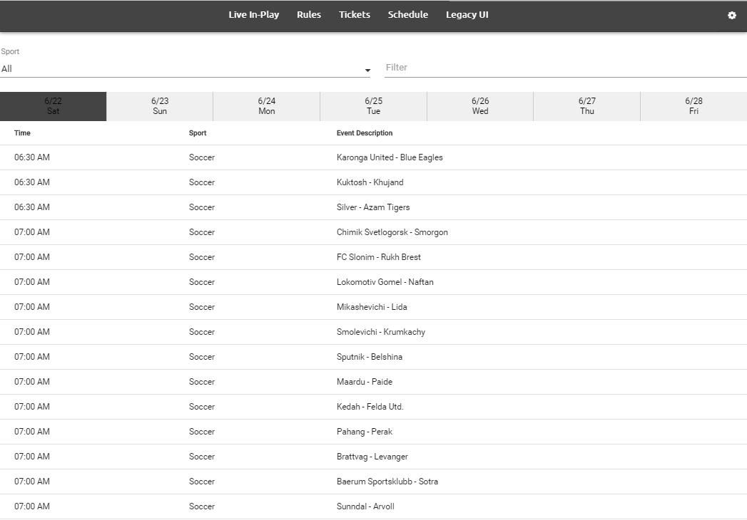 LIVE IN-PLAY SCHEDULE
